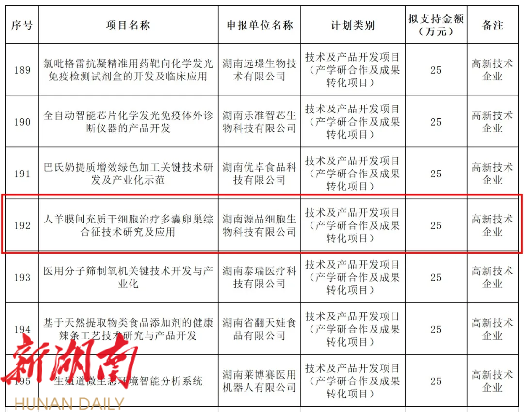 近日,长沙市2021年重点研发计划、平台和人才计划项目完成公示。源品生物联合长沙市妇幼保健院共同申报的“人羊膜间充质干细胞治疗多囊卵巢综合征技术研究及应用”项目成功入选。这项技术的研发,将为多囊卵巢综合征患者带来治愈的新希望,有利于提高女性生理健康水平。同时,在我省生物医药技术领域,对于填补我省生物医药领域短板,突破省内国家一类生物创新药物技术研发具有重要意义。