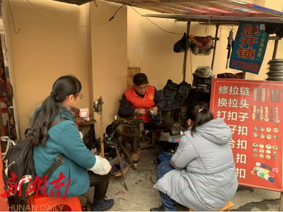 活动现场,在一家小小的维修摊点里,服务队志愿者邓巨民正穿着红马甲,为一位视力残疾女士修鞋,他是位70岁的老人,开店28年,多年来社区一直有帮扶老两口,他满怀感情地说:“党和政府的关爱,让我们满怀感激之情。加入到服务队,可以做点力所能及的事情,很有意义。凡是特殊群体前来维修,我们都给予减免。”在一家温暖的大药房里,服务队志愿者张道兰正在忙碌着,为有需要的居民进行免费血糖血压检查,今天已为30多名居民服务。通过富强社区预约,药房还将为居民上门免费理发,主要是帮扶生活困难或不便的群众。服务队志愿者周春霞住在该社区多年,经营着一家烟酒行,有空时经常参与社区各种志愿服务,还义务打扫社区最大的开放式小区皂果小区。