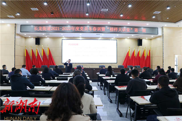 湖南日报·新湖南客户端3月10日讯(通讯员 林畅 兰钊)今天,长沙县长龙街道2021-2022年度党员冬春训暨“榜样大讲堂”第一期举行,一场为党员干部锤炼党性修养、充电赋能加油的“精神课堂”全新启航,通过党性教育、廉政党课、实践课堂三个方面的精彩授课,使党员教育有“声”有“色”,走“心”走“实”,激发广大党员干部踔力奋发、笃行不怠,助推街道高质量发展。