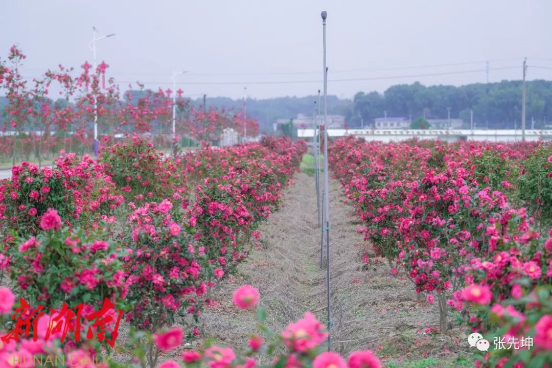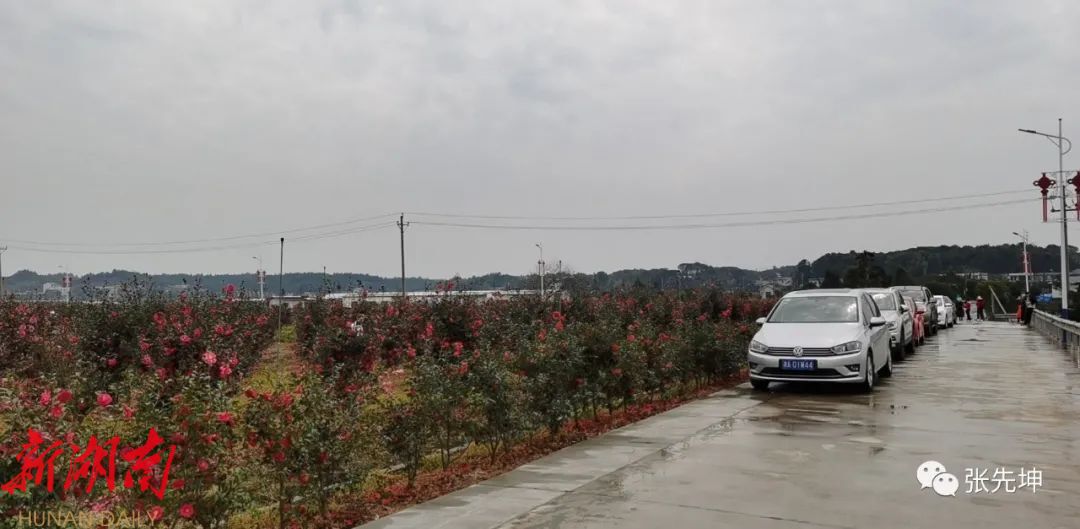 周六上午,当大伙参观完田汉文化产业园,驱车来到位于果园镇杨泗庙社区的东红牡丹基地时,这里早已人山人海,前来赏花的游客摩肩接踵、络绎不绝。马路旁边,依次停靠的小汽车宛如一条长长的巨龙,市内外、省内外的,应有尽有,一眼望不到尽头。目之所及,到处都是一派熙熙攘攘的繁荣景象。