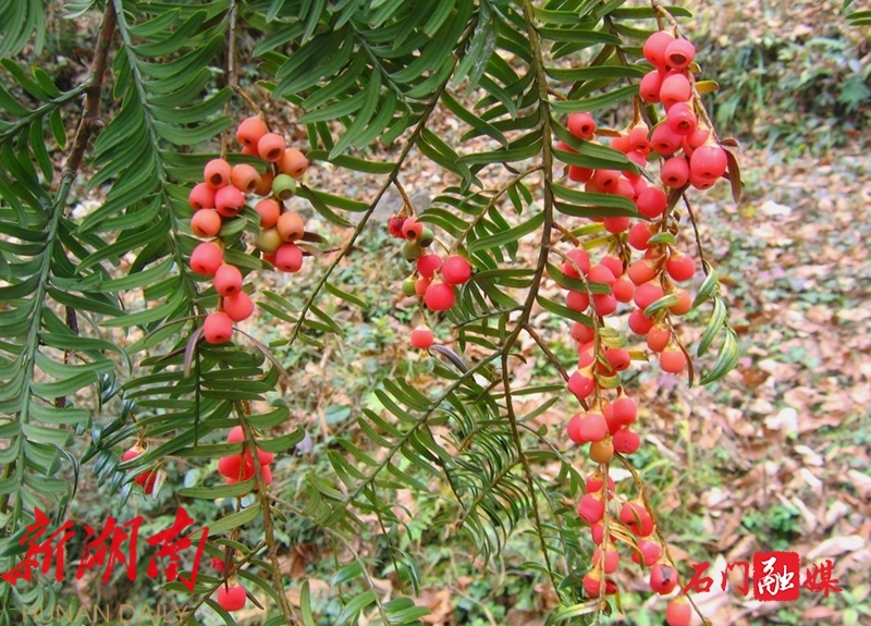 红豆杉: 国家一级重点保护植物,被《世界自然保护联盟》列为濒危物种红色名录。为常绿乔木或灌木,雌雄异株、异花授粉,球花小,单生于叶腋内,早春开放。