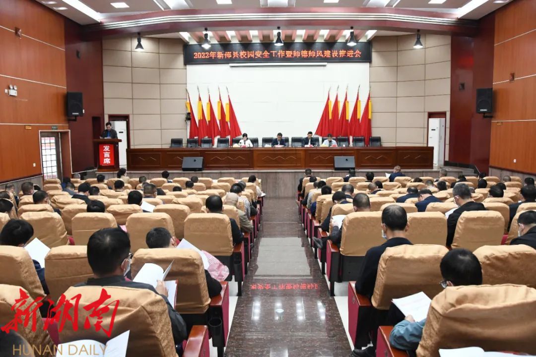 新新邵客户端3月19日讯 3月17日,新邵县校园安全工作暨师德师风建设推进会召开,会议深入贯彻落实2022年邵阳市社会治理六项重点工作,全面安排部署我县校园安全工作与师德师风建设。