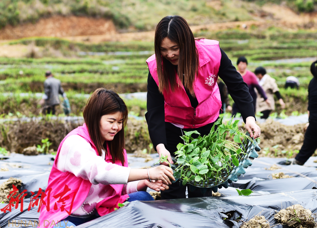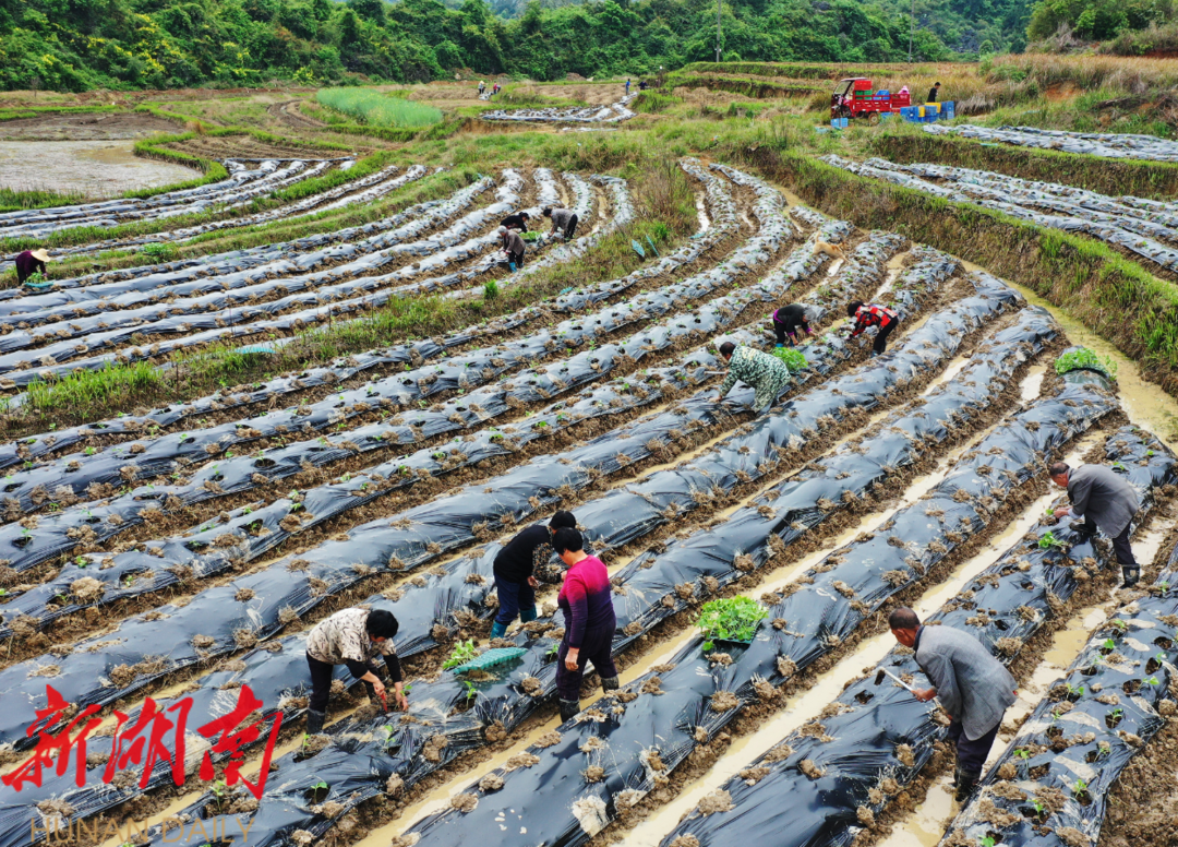 连日来,在珠泉镇双峰村罗家自然村蔬菜基地,村民们忙着平整田土、覆盖薄膜、移栽青瓜,田间地头呈现一派繁忙劳作景象。
