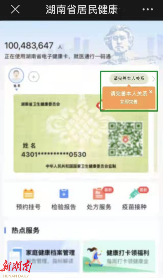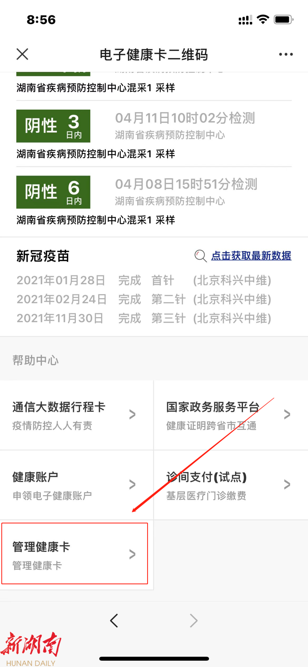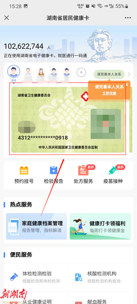 首先为确保核酸检测信息和健康码赋码、解码信息匹配,请及时实人认证湖南电子健康卡。操作步骤如下: