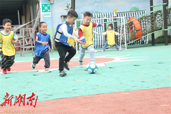 为深入贯彻落实习近平总书记关于振兴中国足球“从娃娃抓起、从基层抓起、从基础抓起”的重要指示精神。为激发幼儿对足球的乐趣,促进幼儿身体和心理健康和谐的发展,4月20日,武陵区新兴幼儿园足球特色活动如期开展。