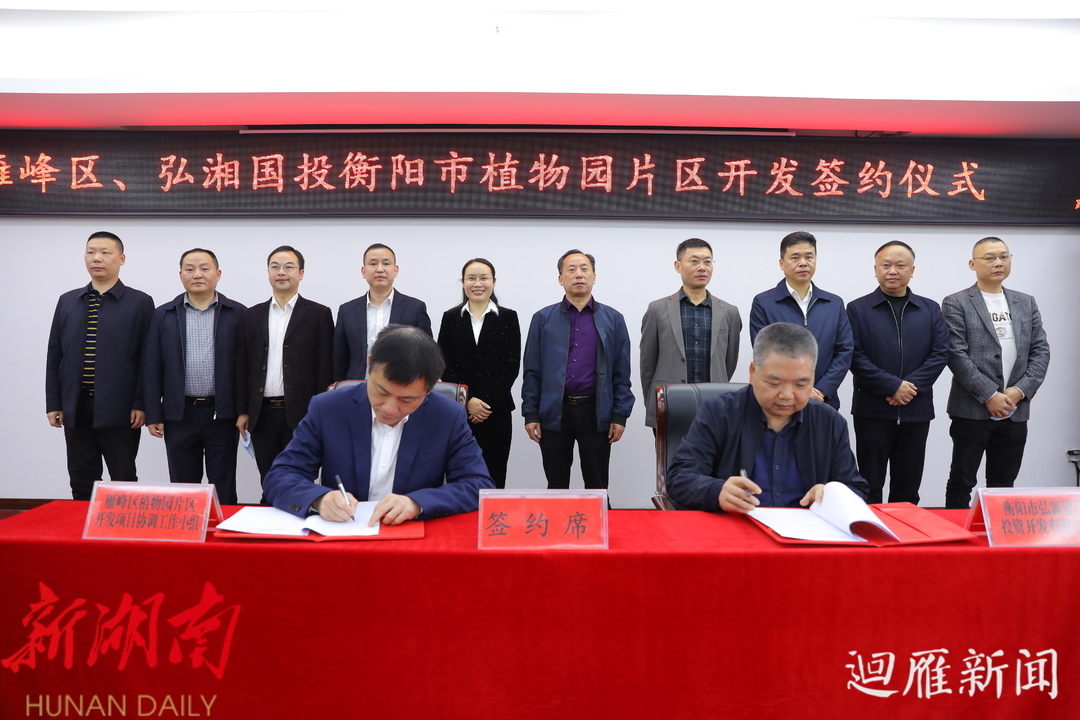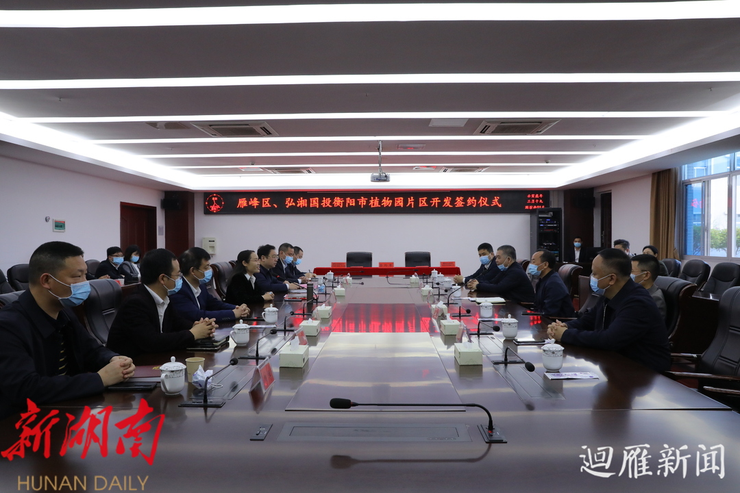 雨生百谷,花开百福。4月20日上午,雁峰区与弘湘国投关于衡阳市植物园片区开发签约仪式举行,双方就共同打造植物园片区有关事项进行了沟通交流,区委书记王燕出席并讲话。区委副书记、区长谢韬,区委副书记、统战部长李世钧,弘湘国投党委书记、董事长张雨民出席签约仪式。