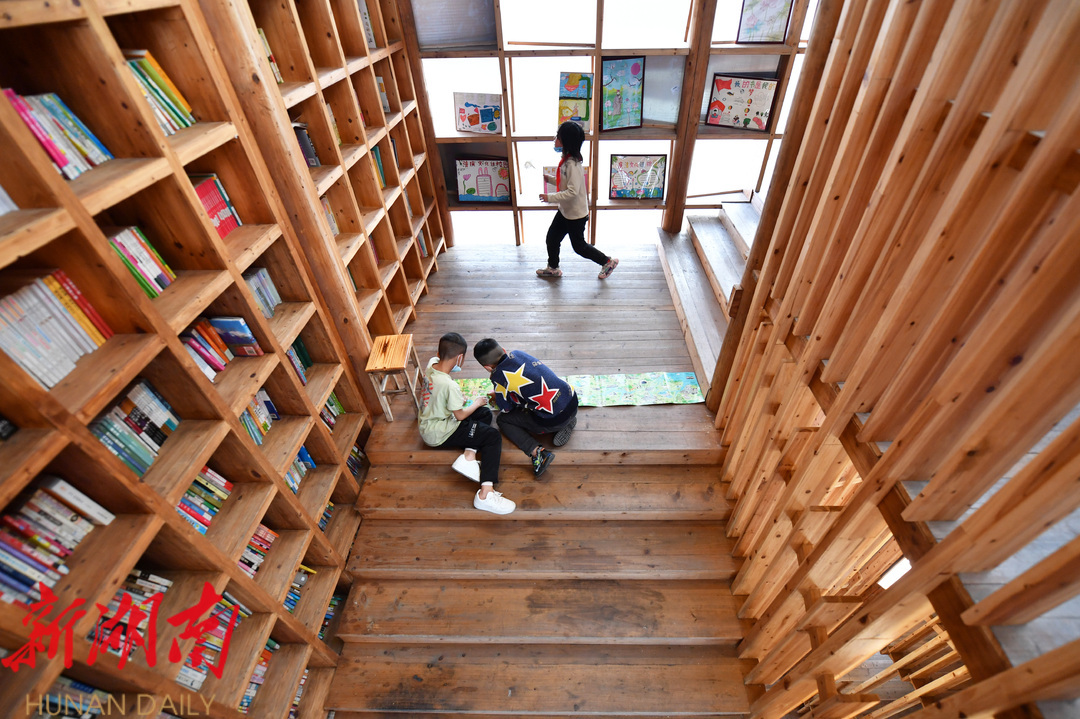 新华社长沙4月23日电(记者明星 洪凌 陈振海)在湖南西南角的连绵群山中,通道侗族自治县坪坦乡中心小学拥有一座浪漫至极的木质图书馆——坪坦书屋。
