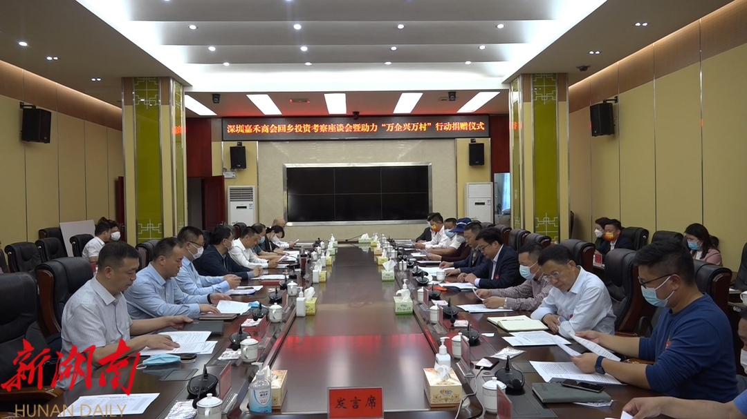 4月 21日,深圳嘉禾商会回乡投资考察座谈会暨助力“万企兴万村”行动捐赠仪式 举行 。县委书记黄仲 指出 , 铸都炉火万年红,还需乡亲共拾柴。希望 深圳嘉禾 商会 情系桑梓,为造福嘉禾作贡献 ; 心系家乡,为投资嘉禾增信心 ; 身系故里,为建设嘉禾立新功。 县委副书记、县长袁章中 主持会议 。 深圳嘉禾商会支部书记、深圳市丰华集祥新能源科技有限公司董事长李忠云,深圳嘉禾商会会长、深圳市轩宇通国际货运与网络科技有限公司董事长李红 参加座谈会 。