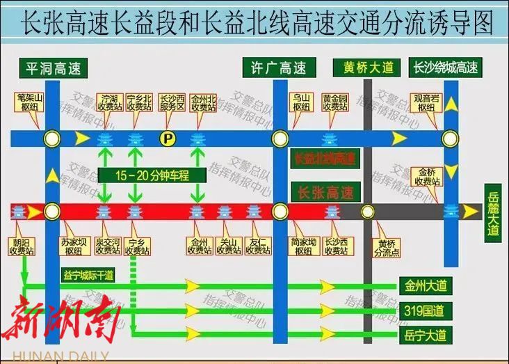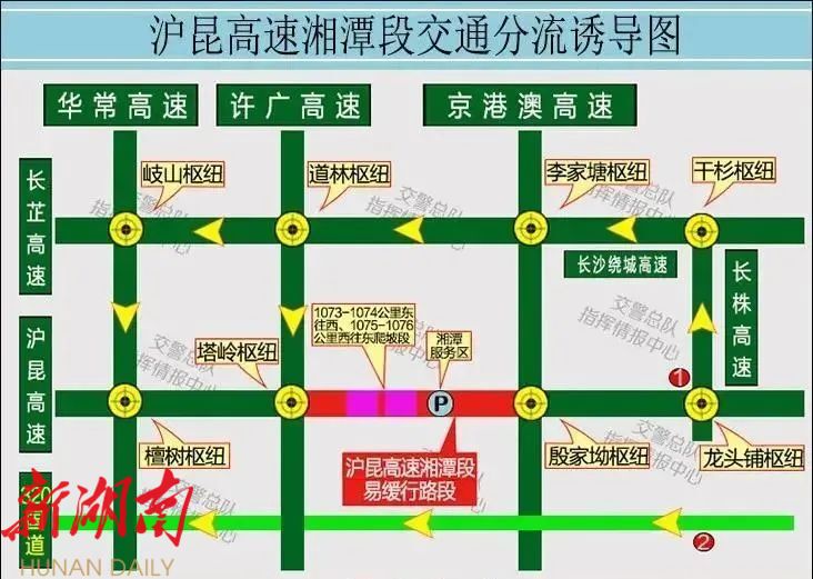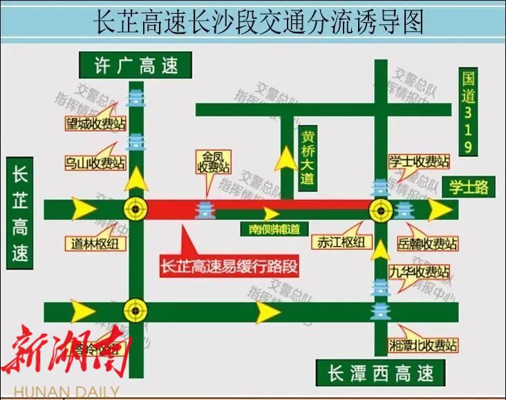 预测假期长张、长芷、杭长、京港澳高速的长沙段和沪昆高速的湘潭段,因车流量大,易出现局部短时交通缓行。
