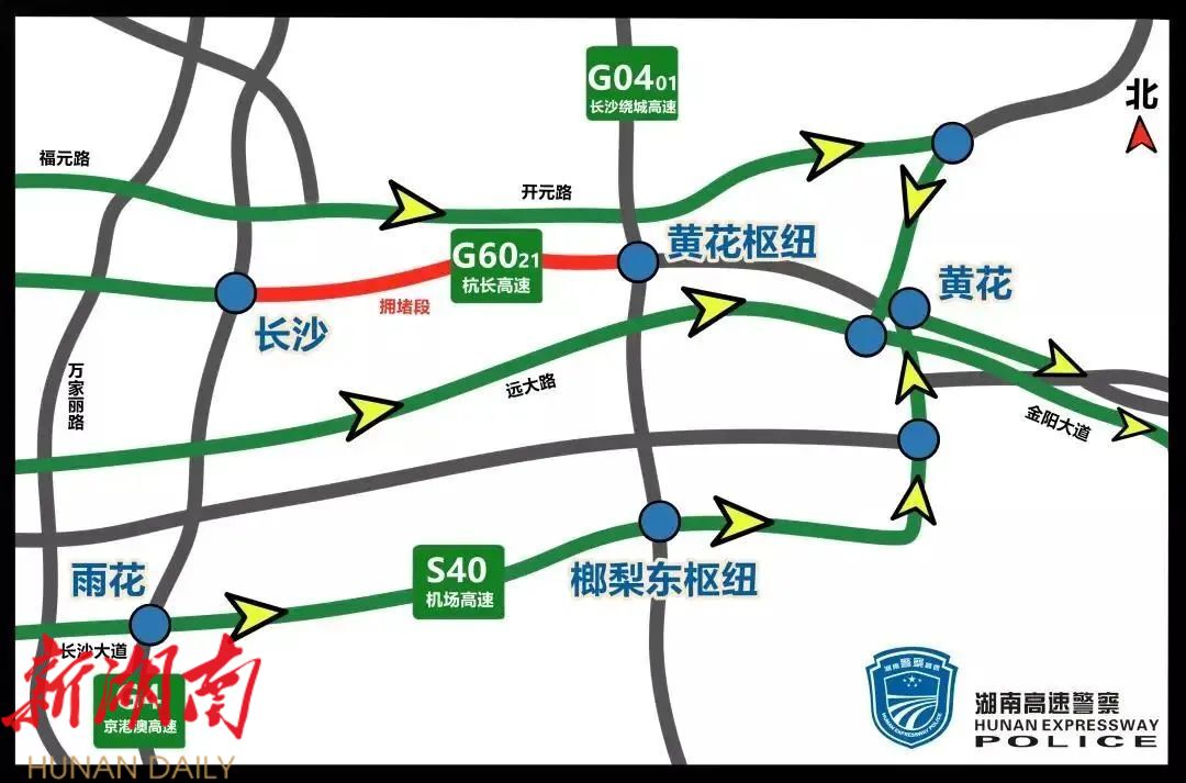 经漓湘东路↔经远大三路↔经黄花支线↔转黄花收费站↔长浏高速。 4.京港澳高速长沙段。