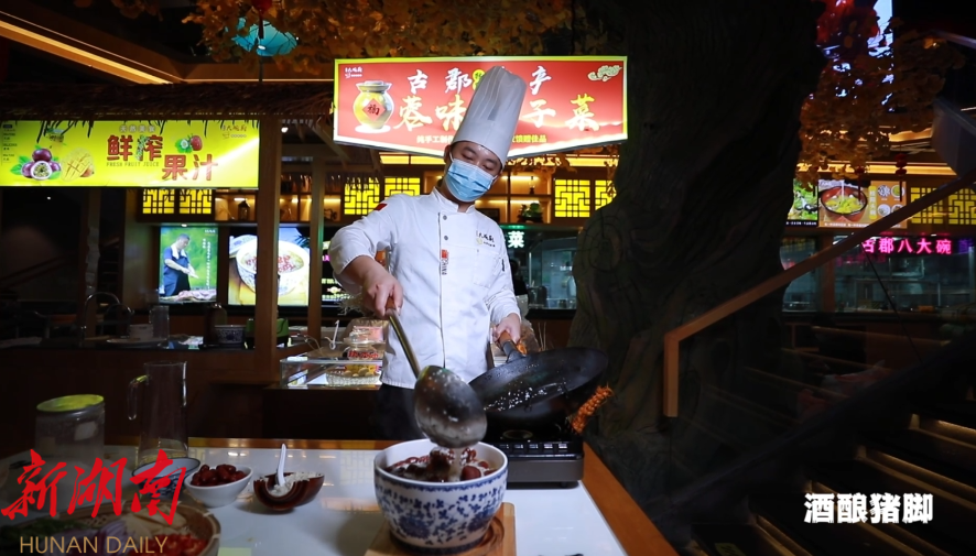 甜酒酿猪脚,又叫伍圆猪脚,是桂阳的一道传统美食。因其甜而不腻,色泽鲜艳,药食同补,颇受食客喜爱。曾在味道湖南大赛中,斩获桂阳赛区、郴州赛区金奖。五一假期间,不少食客邀三五好友,一起打卡“蓉味厨房”,品尝这道桂阳特色民间美味。