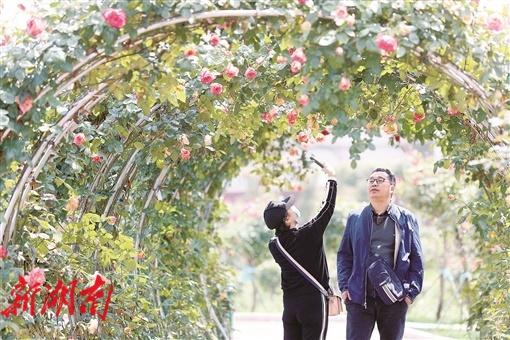 2020年4月12日,衡阳市珠晖区茶山坳镇堰头村月季园,200多个品种的月季花悠然绽放,如绣似锦,美不胜收,吸引了众多游客前来赏花观景。