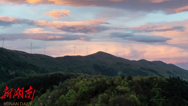 一夜山中客,十年尘外人。走进湖南省石门县太平镇上马蹬村,森林茂密,生态优美,一望无际的青绿,一排排风力发电机高耸山巅。