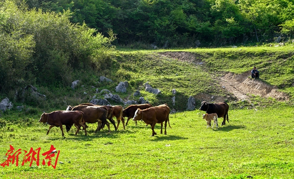 “天苍苍,野茫茫,风吹草低见牛羊。”高山之巅,白云之下,石林之隙,到处长满青绿的嫩草,牛羊点缀在绿波中,好一派南国草原美景。