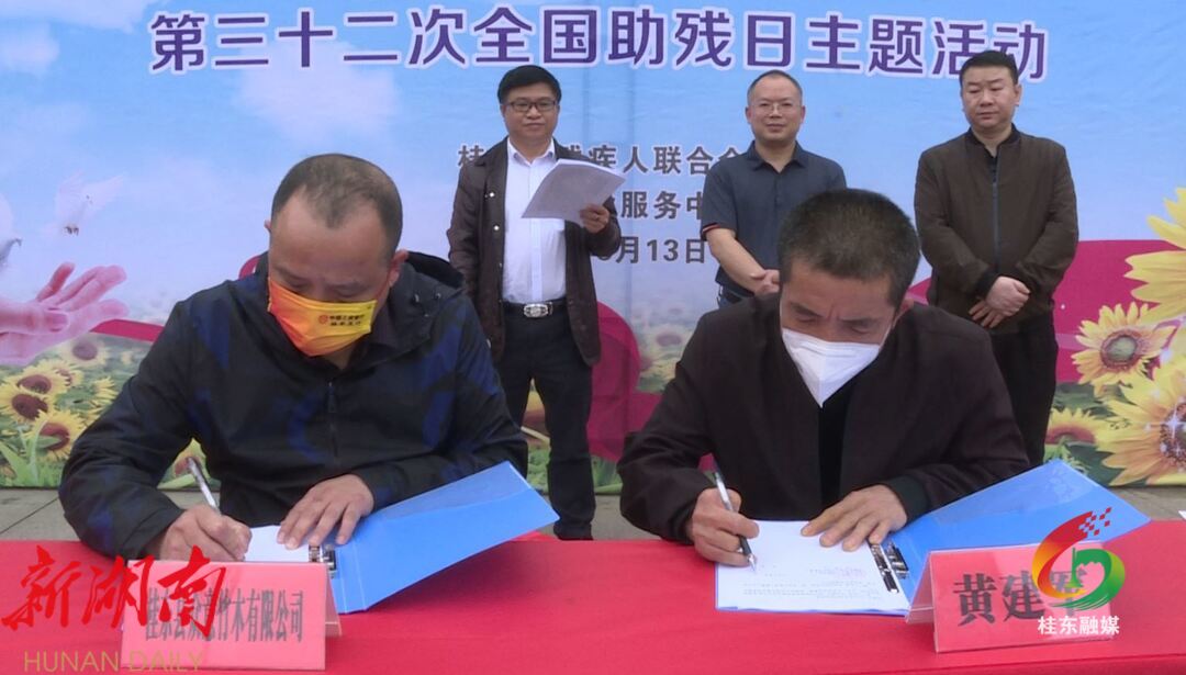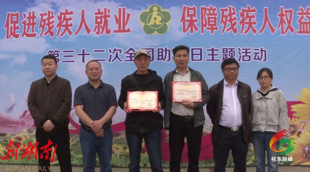 在罗霄广场,活动主办方对2021年度桂东县残疾人创业就业先进集体和先进个人进行了表彰,现场为佩戴助听器的残疾人保养助听器并发放了相关宣传资料。用工企业现场与部分符合要求的残疾人签订了劳动合同。