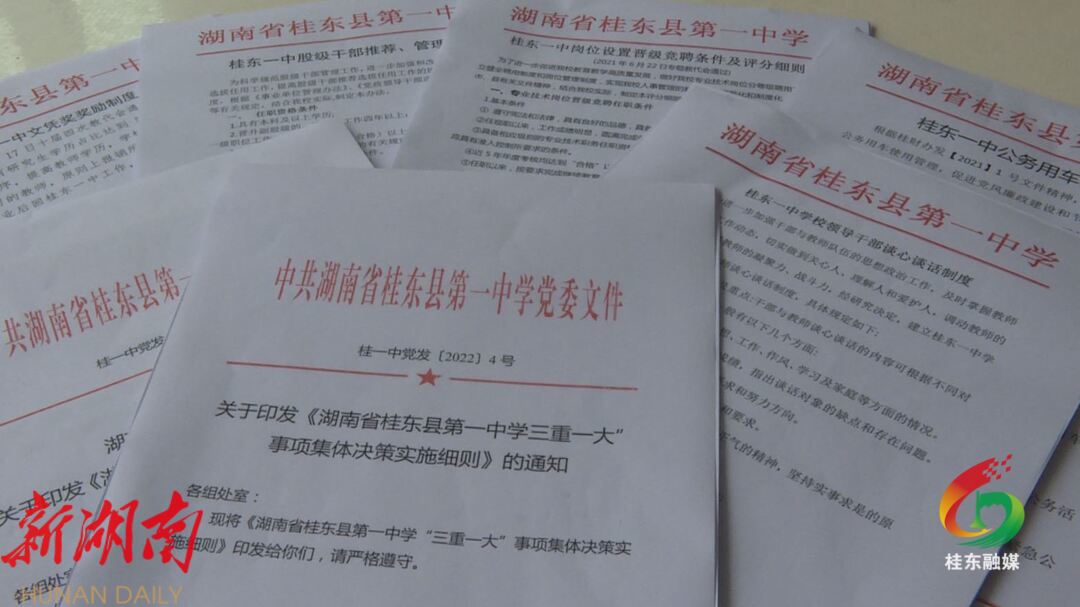桂东一中始终把廉洁从政建设作为各项工作的切入点。坚持以制度管人管事,用制度护“廉”。健全了“清廉学校”建设工作机制,建立和完善了《桂东一中党委会议事规则》《桂东一中校长办公会议事规则》《桂东一中“三重一大”制定》《桂东一中党务校务公开制度》《桂东一中民主管理和监督制度》等一批规章制度,进一步规范权力运行。同时,突出重点领域和关键环节,校纪委全程监督学校重大事项决策、工程建设、物资采购、经费管理等事项,站好廉政风险排查“岗哨”,着力消除小微权力运行中的潜在风险点,为学校健康发展提供有力保障。