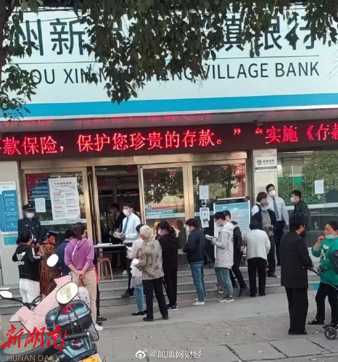 涉事村镇银行关闭线上渠道后,一些储户到营业点排队取款。图片来源于凤凰网