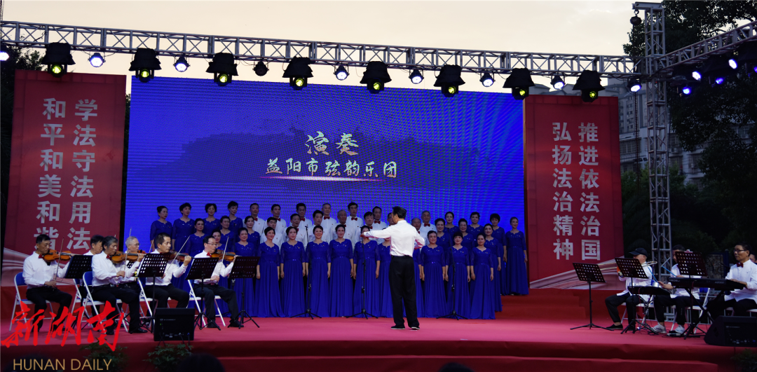 6月24日晚,“喜迎党的二十大 强国复兴有我”资阳区法治文艺汇演在鹅羊池法治文化广场举行。市委政法委副书记戴新安,市委组织部副部长、两新工委书记姚勇奇,市委宣传部副部长包后勇,市司法局副局长雷细珍及区委常委、政法委书记贺武彬,区委常委、宣传部部长曹令其,区委常委、组织部部长贺江华同近1000名群众观看了演出。