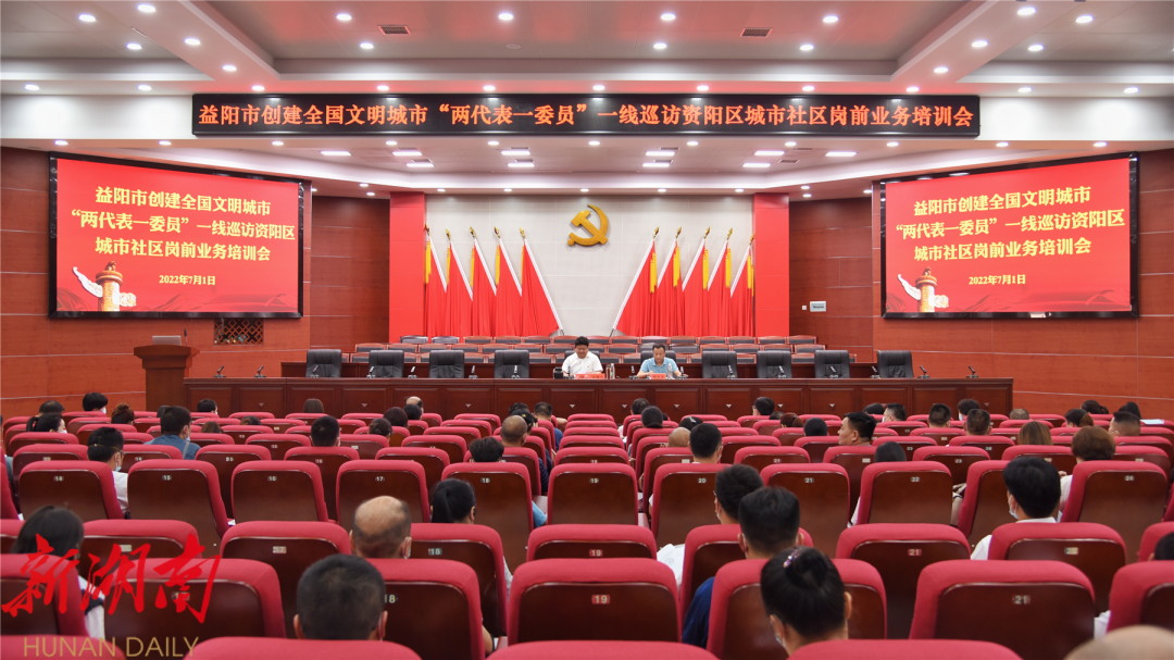 7月1日,益阳市创建全国文明城市“两代表一委员”一线巡访资阳区城市社区岗前业务培训会召开。区委书记付振南主持会议,省市两级党代表、人大代表、政协委员,各街道(经开区)社区联点领导、党组织书记、创文专干共200余人参加培训。