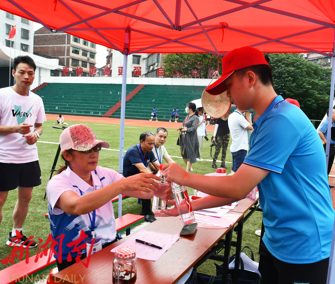 来自新邵新航中学初三学生何欣和妈妈一起报名当起了志愿者,她们每天奔走在赛场,顶着炙热的阳光一站就是一天,汗水湿透衣衫,她表示作为一名志愿者,每天虽然很忙,也很累,但是能为这次民运会奉献出自己微薄的力量,还是很开心,很快乐。