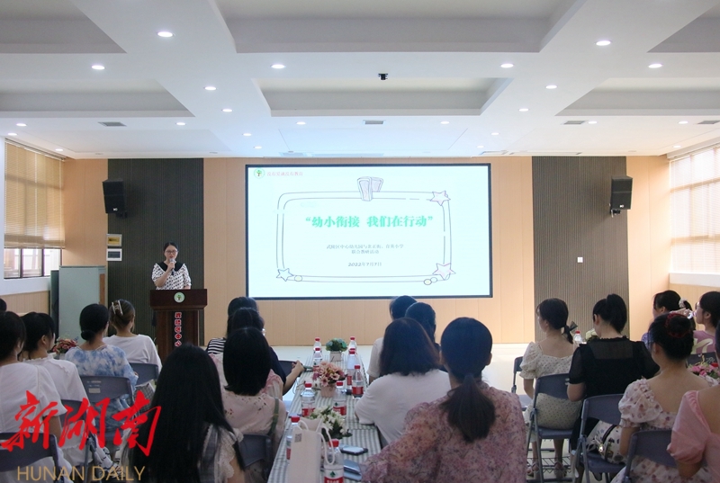 7月7日,武陵区中心幼儿园、北正街小学、育英小学举行了幼小衔接主题教研活动,来自幼儿园及小学的40余名骨干教师齐聚中心园,共话科学幼小衔接。