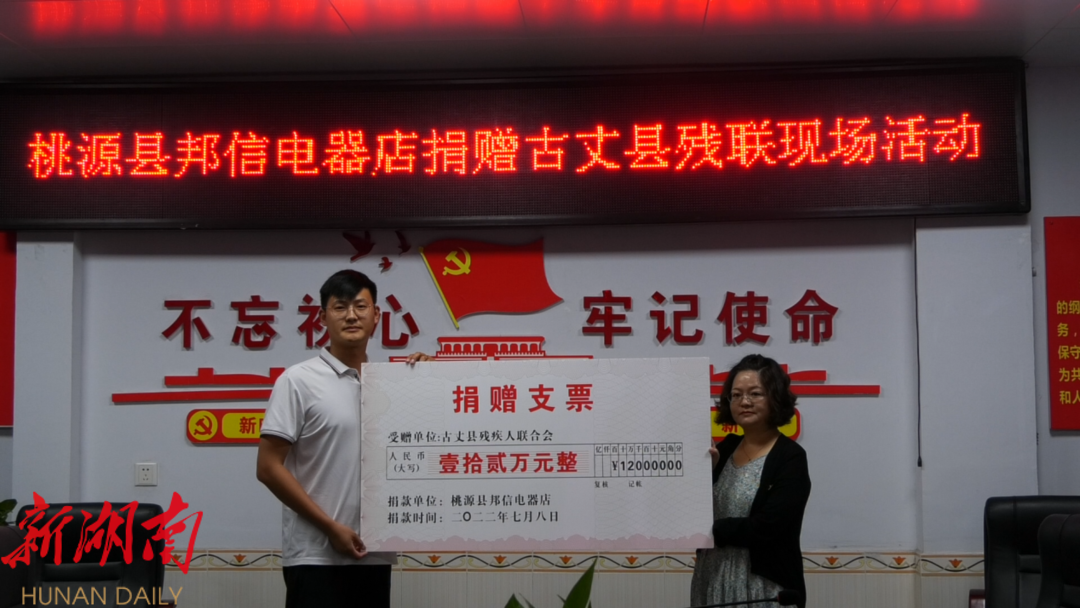 新湖南客户端7月8日讯(记者 向芝琴 实习生 王静)7月8日,湘西土家族苗族自治州古丈县残疾人联合会接受了桃源县邦信电器店的爱心款捐赠,同时,现场还开展了假肢义诊和矫形器适配活动。