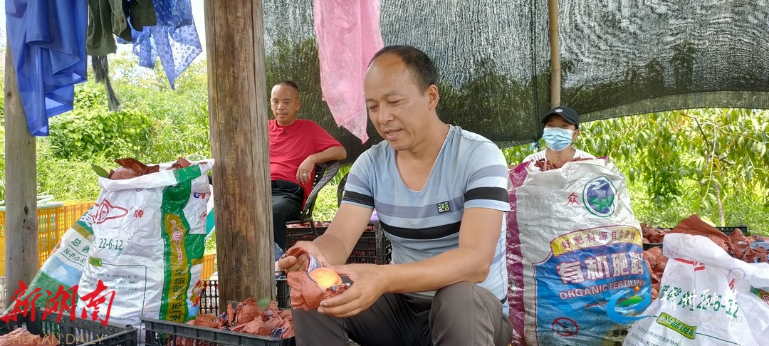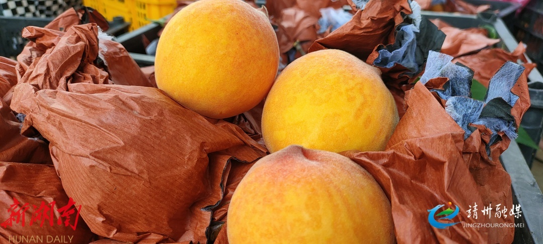 靖州融媒体中心7月14日讯 (记者 龙俊霓)7月12日,在渠阳镇断桥村,果农段生根正穿梭在黄桃种植园内,摘果、称重、装箱,好一派喜人的丰收景象。