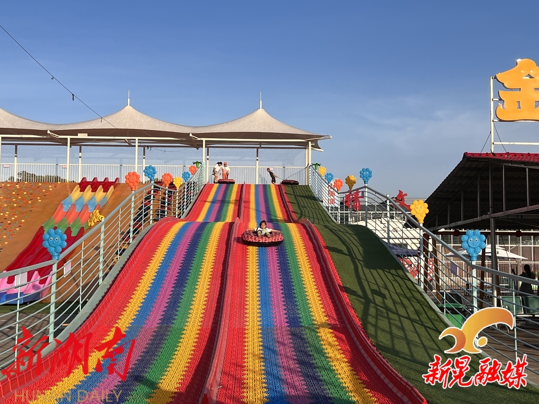 走进园内,记者看到不少家长和孩子正在体验园内项目。有的身着安全装备,背挂安全绳,在摇晃的轮胎上小心翼翼地往前走;有的在斜坡攀爬网上挑战自己;还有的从彩虹滑道上飞驰而下,感受加速带来的快乐。园内欢声笑语不断,大家脸上都洋溢着开心的笑容。