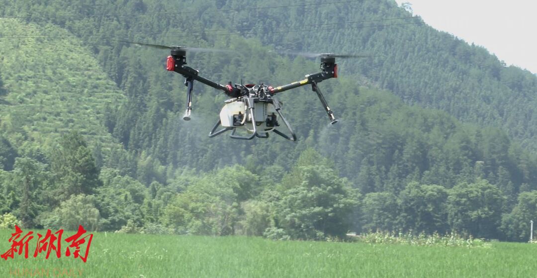 近日,正值盛夏,艳阳高照,在县隆平高科种粮专业合作社大塘镇全溪村绿色食品生产基地,作业人员正操作无人机进行水稻病虫害防治;稻田之间新安装的多盏太阳能杀虫灯矗立在田间诱捕害虫;远处的田地里,村民们正忙碌地进行人工除草。