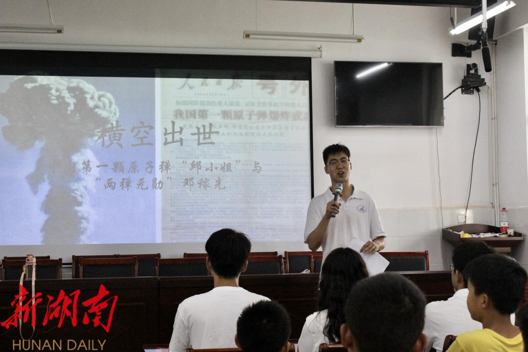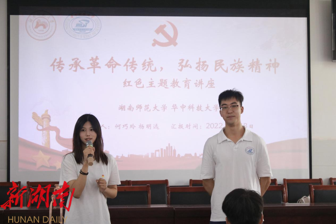 湖南日报·新湖南客户端7月23日讯(通讯员 何巧玲 葛敏 向梓颖)一代人有一代人的征程,一代人有一代人的使命。为了让中小学生了解红色事迹,感受红色精神,加强同学们爱党、爱国、爱人民的理想信念,7月18日下午,湖南师范大学工程与设计学院团委“夏乡之源”实践团与华中科技大学“学子入金岩,乡村五振兴”实践队共同组织开展“传承革命传统,弘扬民族精神”红色主题教育讲座。金岩芙蓉学校小学部和初中部共80名学生参加了本次活动。