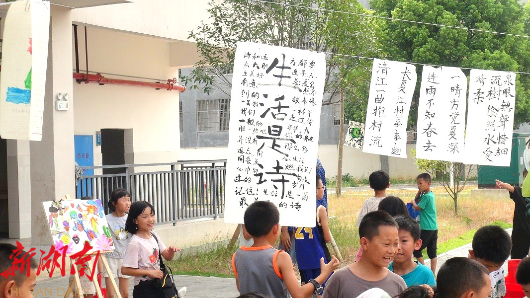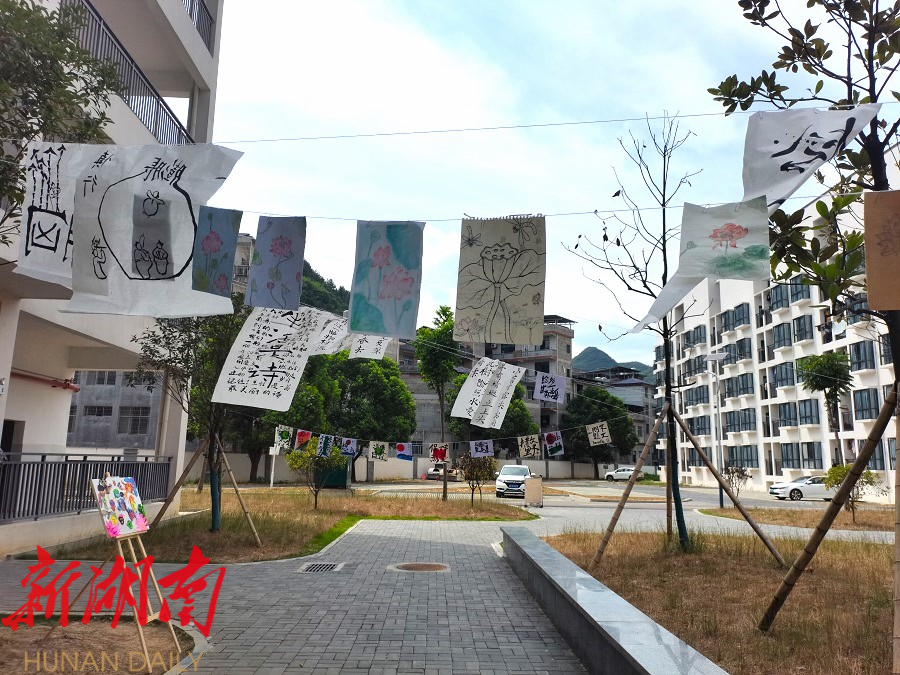 湖南日报·新湖南客户端7月23日讯(通讯员 葛敏 何巧玲)七月的烈日热情似火,蓝天白云下,热浪吹起树间挂着的一幅幅美丽的图画,阳光洒在五彩斑斓的石头画上,这一切像是童年的美梦变成了现实。这一场景出现在了湖南师范大学工程与设计学院赴张家界市慈利县“夏乡之源“暑期社会实践团开展的“稚童年”儿童艺术作品展上。