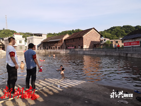 7月26日,永兴县马田镇李家村委会组织党员干部群众义务投工投劳清洗干净的一口约2000平米的露天游泳池免费投入使用,吸引了本村及周边村众多村民和孩子前来游泳戏水玩耍。"在露天游泳池岸边,我们组织党员干部、公益性岗位人员全天候轮流值班值守,确保有人蹲守、有人陪护、有人引导,给孩子们提供一个安全稳定的游泳点,有效提高了防溺水工作的精准度。"马田镇李家村党支部书记李艳军介绍道。