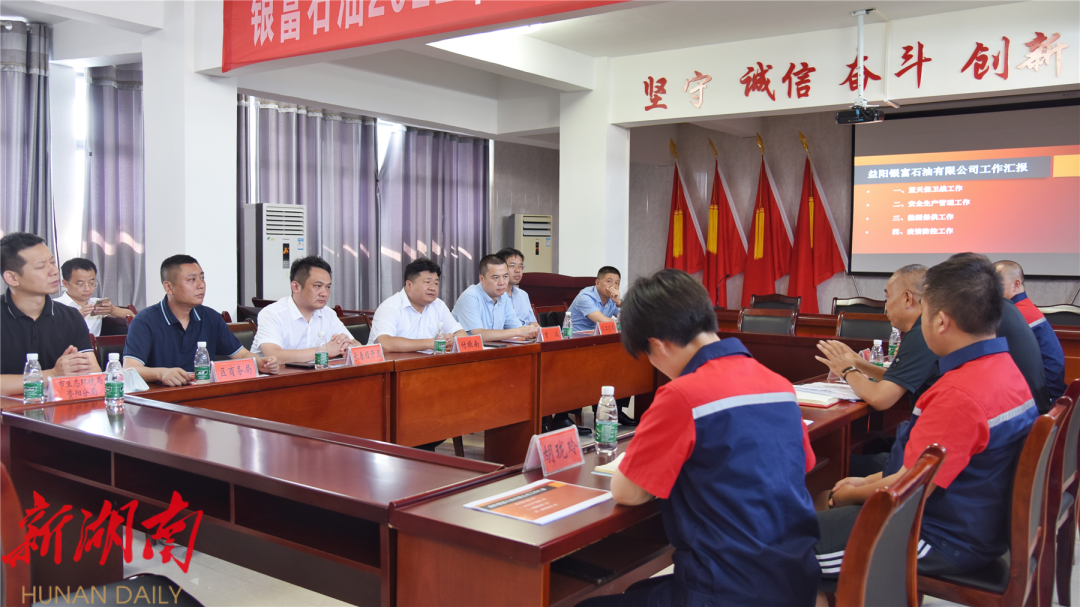来到银富石油,付振南听取了企业负责人关于企业发展历程、生产经营、安全生产等情况的汇报,详细了解企业的发展诉求和意见建议,并与园区、企业负责人深入探讨企业发展方向。
