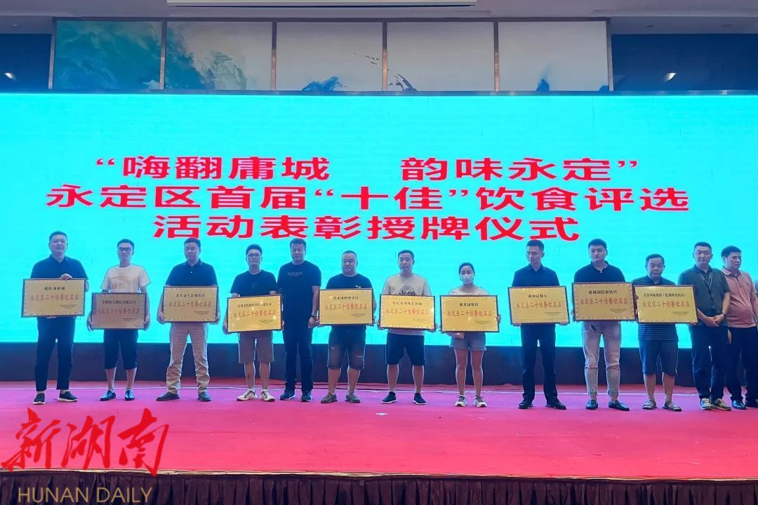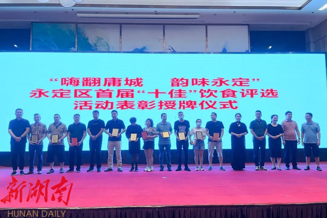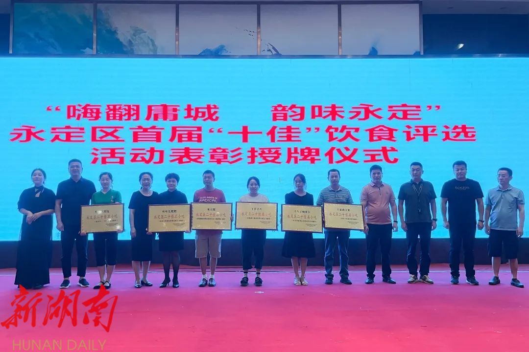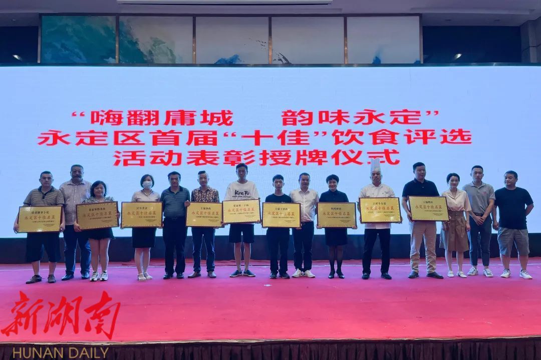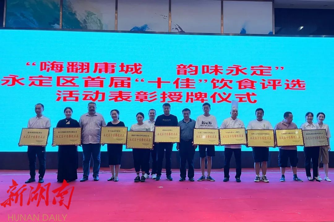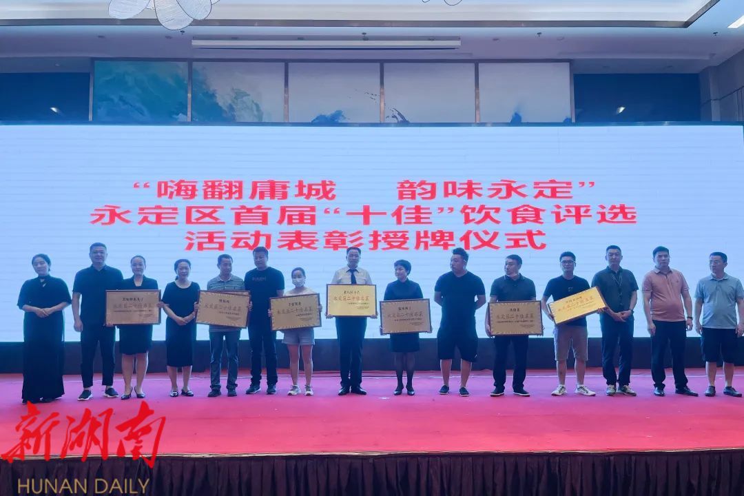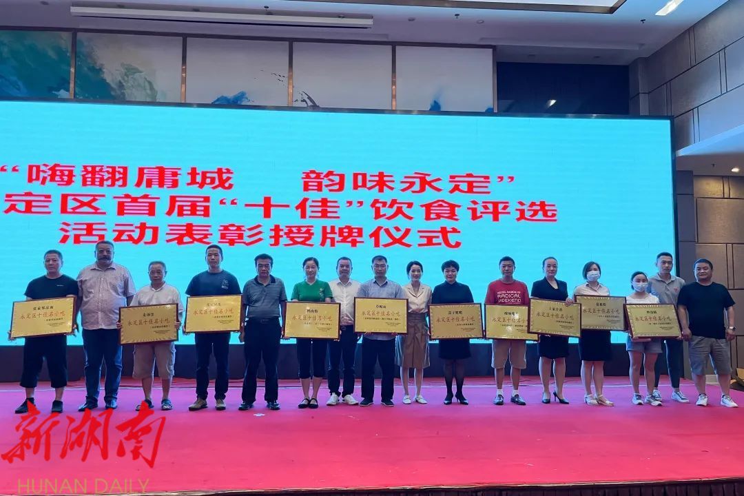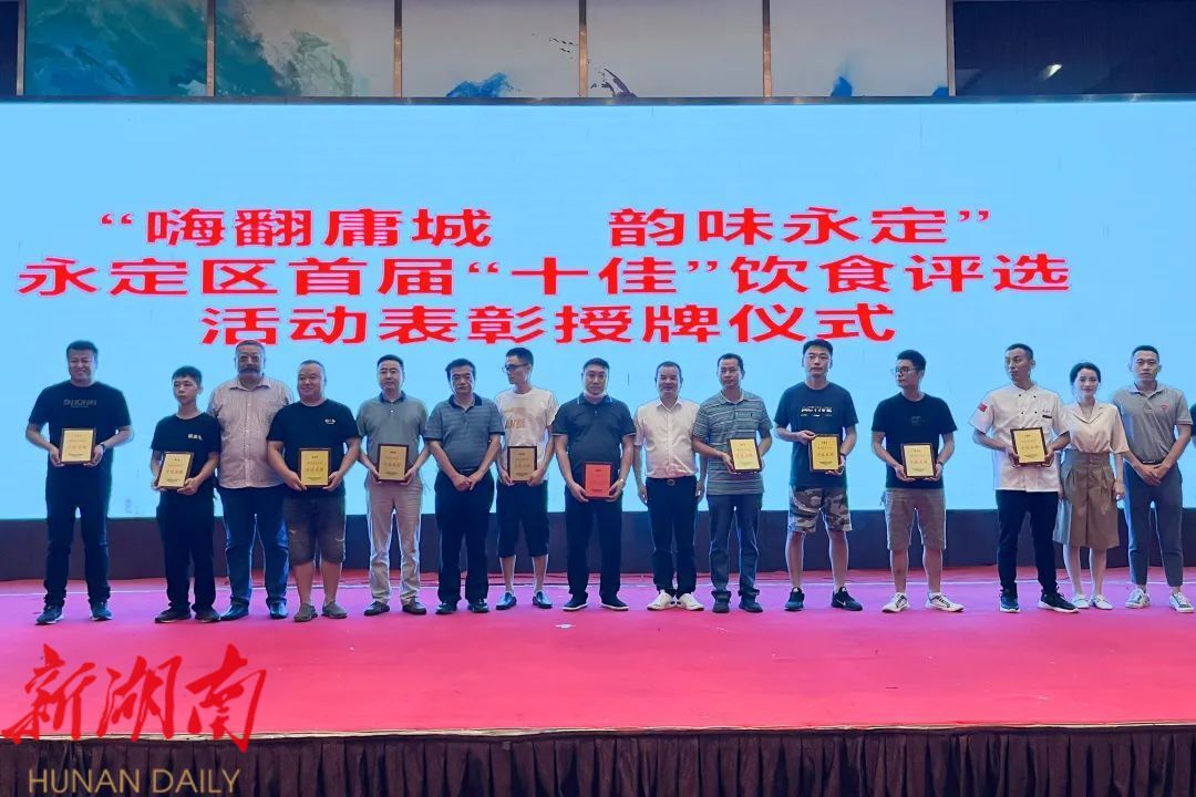 8月3日,“嗨翻庸城 韵味永定”永定区首届“十佳”饮食评选活动举行表彰授牌仪式。入选“十佳”的餐饮企业及个人正式代表永定区参加即将于8月5日举行的“味道湖南”第三届张家界旅游美食节暨十大名菜名厨名店名小吃评选活动。