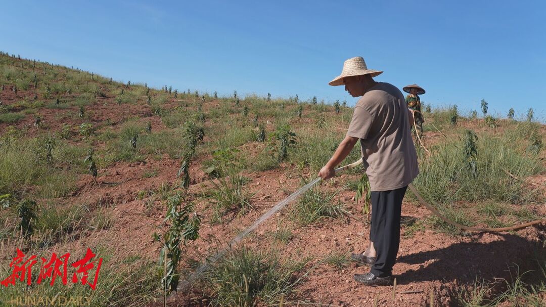 中方融媒8月13日讯 8月11日,在中方县泸阳镇泸西村狮子岩水库花椒种植基地,曾经光秃秃的山坡披上了一层绿衣,村支“两委”干部同基地工人正进行抽水抗旱保苗,20000余株花椒树在阳光照射下茁壮生长。