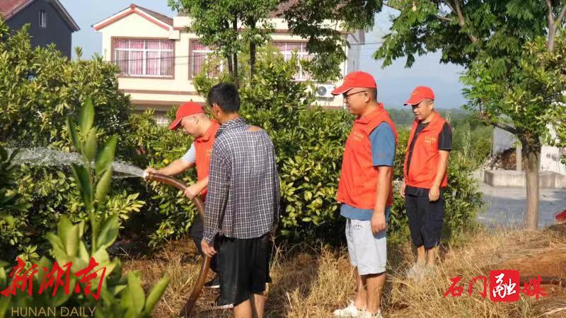 一大清早,抗旱服务队来到秀坪园艺场木山村的柑橘地里检查抽水机运行情况。此时,村民晏银生正在用抽水泵对橘园进行浇水灌溉。由于抗旱措施到位,橘树在持久的高温中仍然生机盎然。