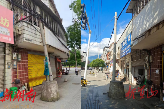 蓝山县舜乡路通信线杆重新挺直“腰杆”
