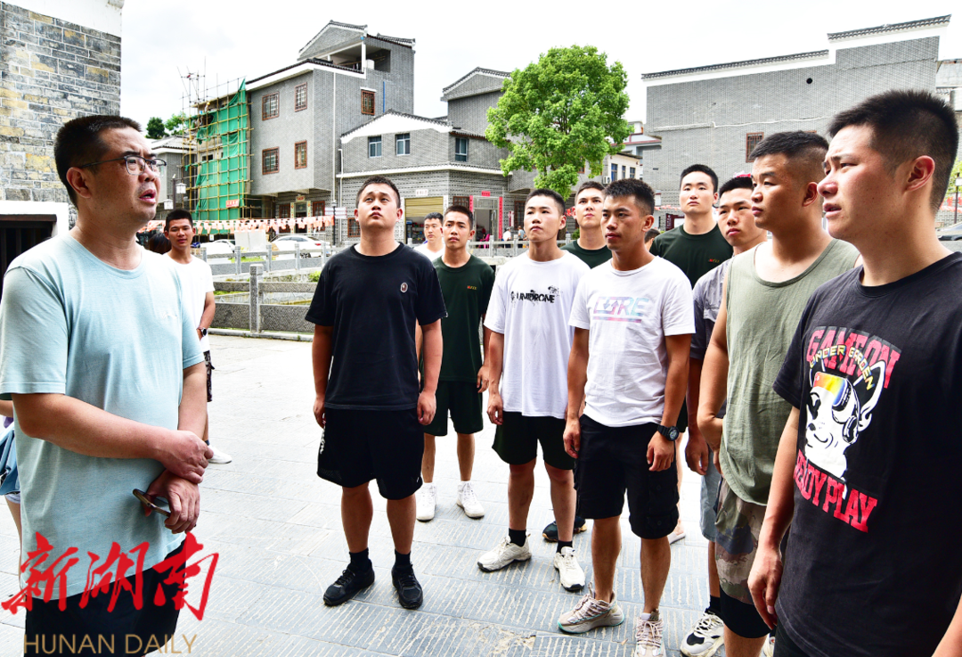 待退役士兵在袁家镇小街田村萧克故居参观,聆听红色革命故事。