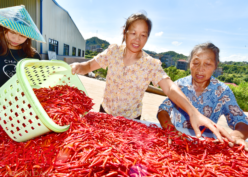 8月18日,珠泉镇大路村,村民在采收小辣椒。 近年来,该村充分利用优越的区位环境优势,因地制宜发展特色农产业,成立红茂岭种养合作社,同时通过“党建+公司+农户”模式,种植小尖椒、菜椒、三味辣椒共1600多亩,形成了“育苗、种植、加工一条龙的辣椒产业链,所生产加工的辣制产品销往全国各地,有效促进了农业增效和农民增收,助力乡村振兴。