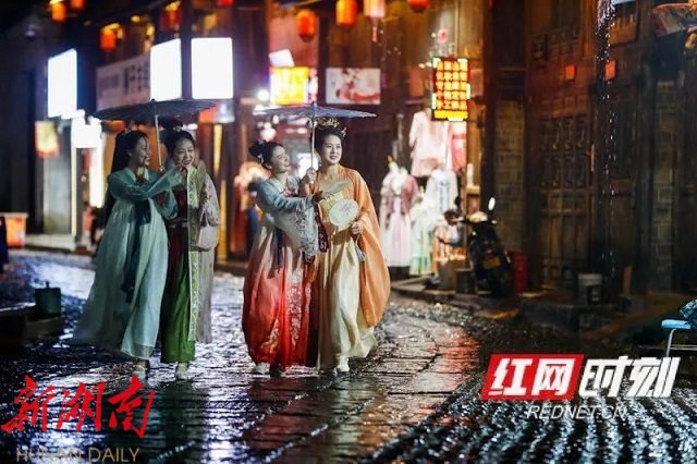 当别的地区夜间经济项目仍局限于“撸着串喝着酒唱着歌”的阶段,零陵则以“文化磁力”放大城市魅力,激活消费潜力。作为零陵夜游的“文化担当”,零陵古城也乘着夜经济东风,积极拓展夜间文旅消费广度和深度。为了给游客带来不一样的体验,依托零陵古城汉服IP,微演艺、行浸式夜游、文创集市成为零陵夜间经济的重要活力因子,不断丰富人们的文旅休闲生活,助力夜经济蓬勃发展。