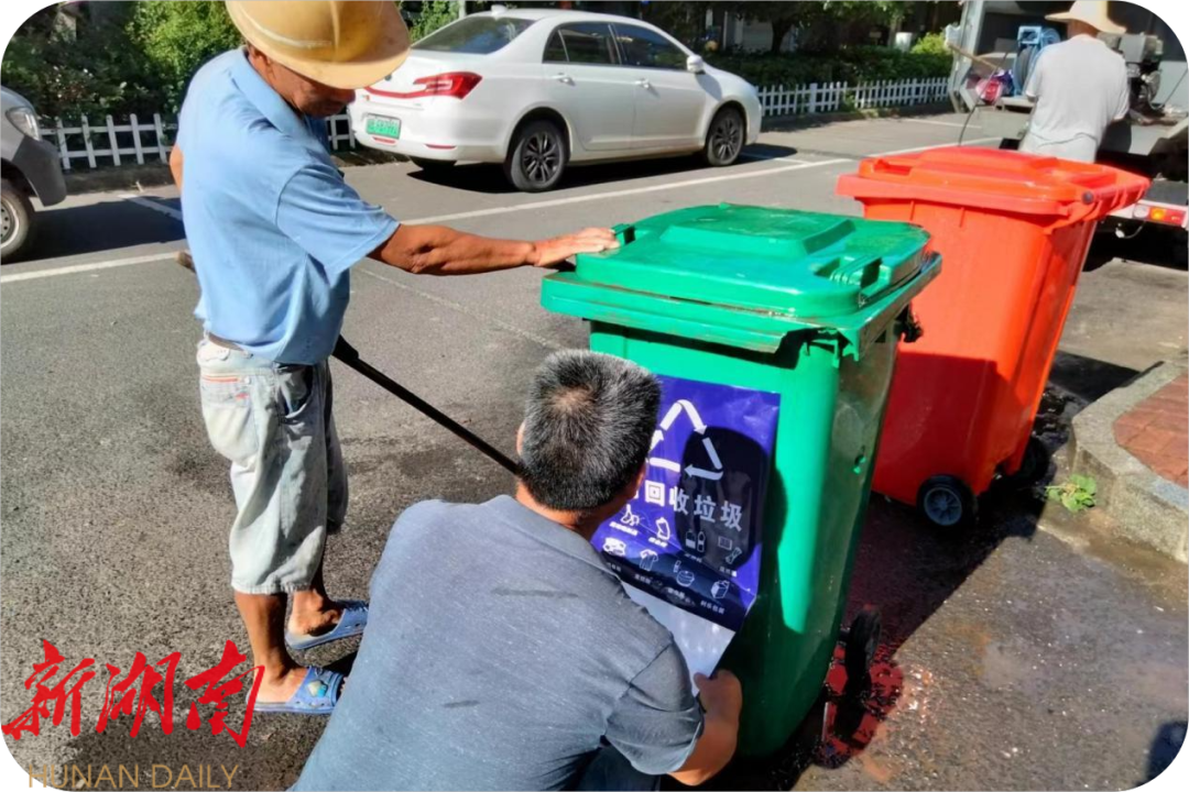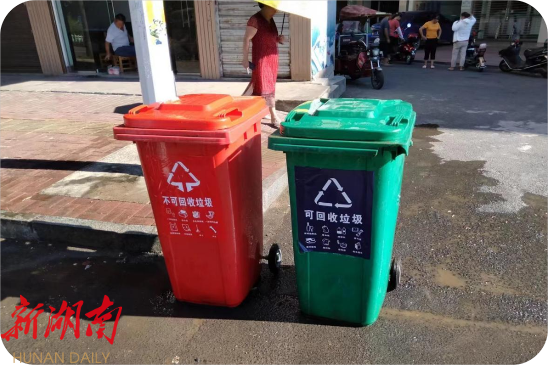 为解决垃圾堆放问题、营造更加整洁的镇区环境,海南塘社区党员主动调整垃圾桶摆放位置以方便周围群众倾倒生活垃圾,并对过旧的垃圾桶进行逐个清洗,补充和更换分类标志,方便群众扔垃圾入桶、引导群众将垃圾分类。