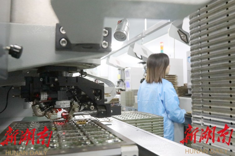 (2022年5月,湖南捷芯微电子有限公司在常德高新区扩产投产,生产订单接连不断,得益于园区优沃的营商环境,让企业在常德不断发展壮大。图为公司贴片生产线。 向波 摄)