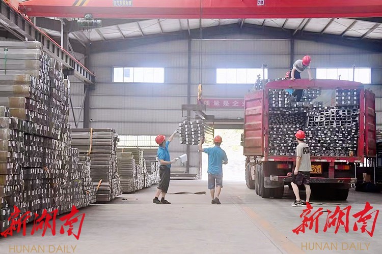 (工人正在湖南国宗铝业有限公司车间将铝制品装车。新华社记者 周勉 摄)