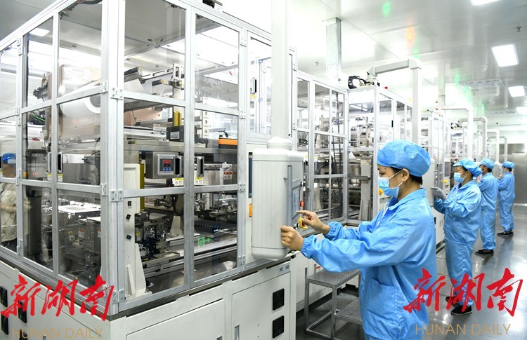(8月24日,常德昆宇新能源科技有限公司车间内,技术人员在操作全自动智能化电芯产线。今年6月正式投产的昆宇集团6GWh通信储能电池项目,总投资30亿元,生产的产品远销俄罗斯、印度和韩国等国家和地区。该项目达产后,预计年产值60亿元,年创税收1.5亿元。 罗勇 摄)