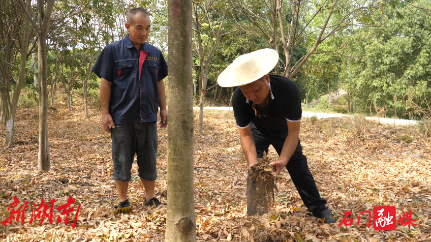 看完这边的情况,盛孝前又步履匆忙地赶到附近另一个无患子林指导无患子的浇灌方法。
