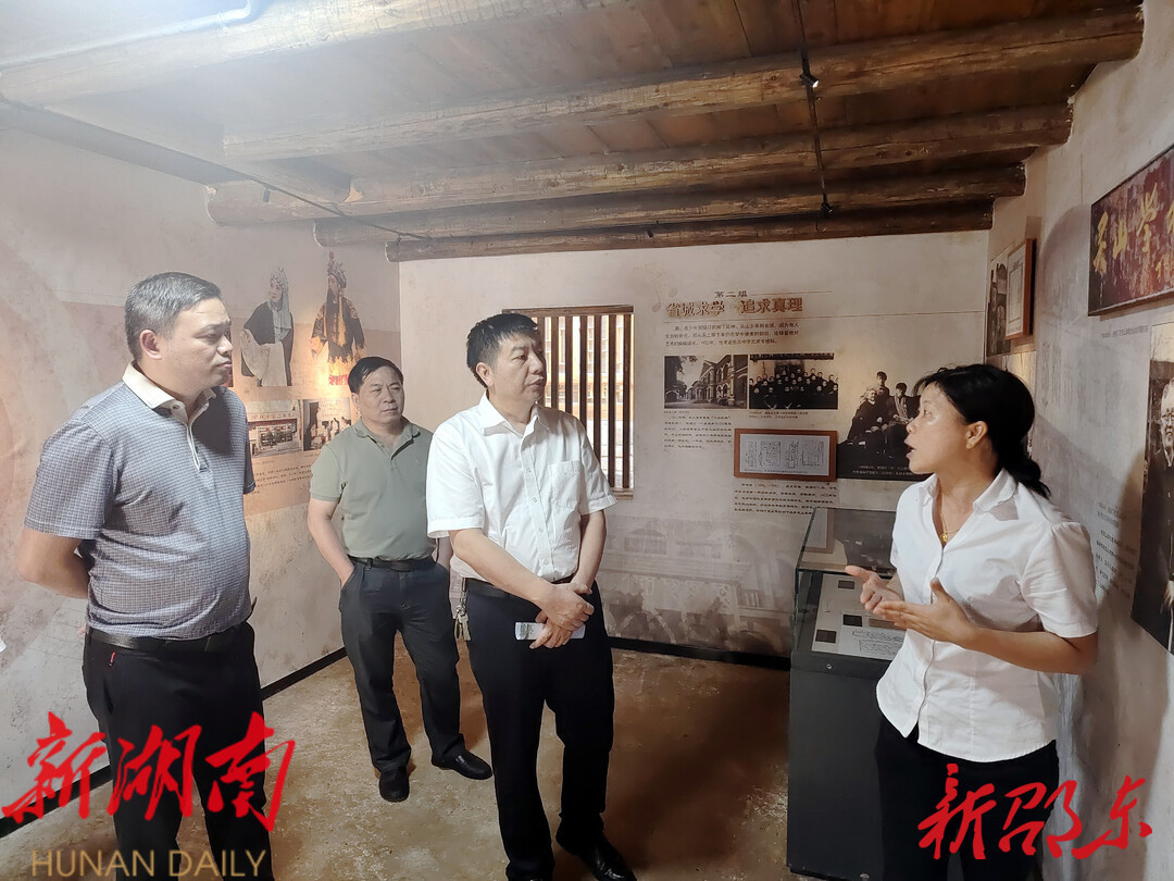 调研组一行来到贺绿汀故居爱国主义教育基地现场查看基地建设、管理、使用情况,并详细了解了贺绿汀同志的生平事迹。在随后的座谈会上,调研组听取了2022年邵东市委宣传思想工作和意识形态工作情况汇报。并围绕意识形态责任制落实、理论学习、重要理论读物的发行与学习、爱国主义教育基地的建管用、舆情信息报送等重点工作进行了交流。
