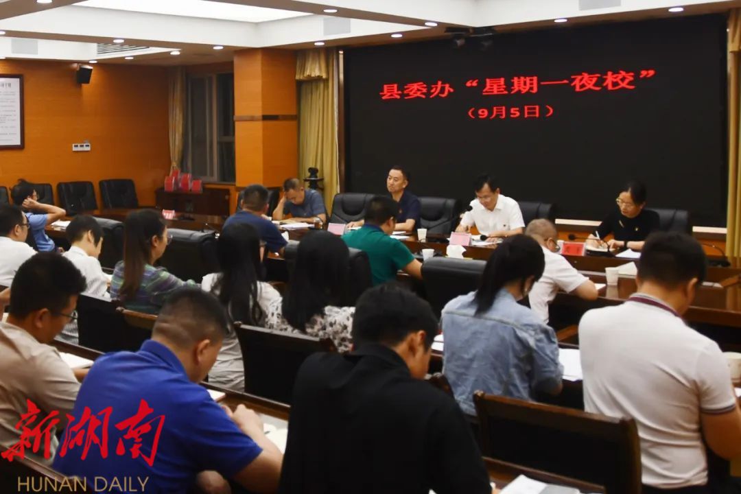 新新邵客户端9月6日讯 9月5日晚,新邵县委办公室举行“星期一夜校”暨党建引领促乡村振兴9月主题党日活动。县委书记陈历贤出席并讲话,县委常委、县委办主任隆慧主持会议,县委办、县委县政府发展研究中心全体干部、县委党史办全体党员参加。