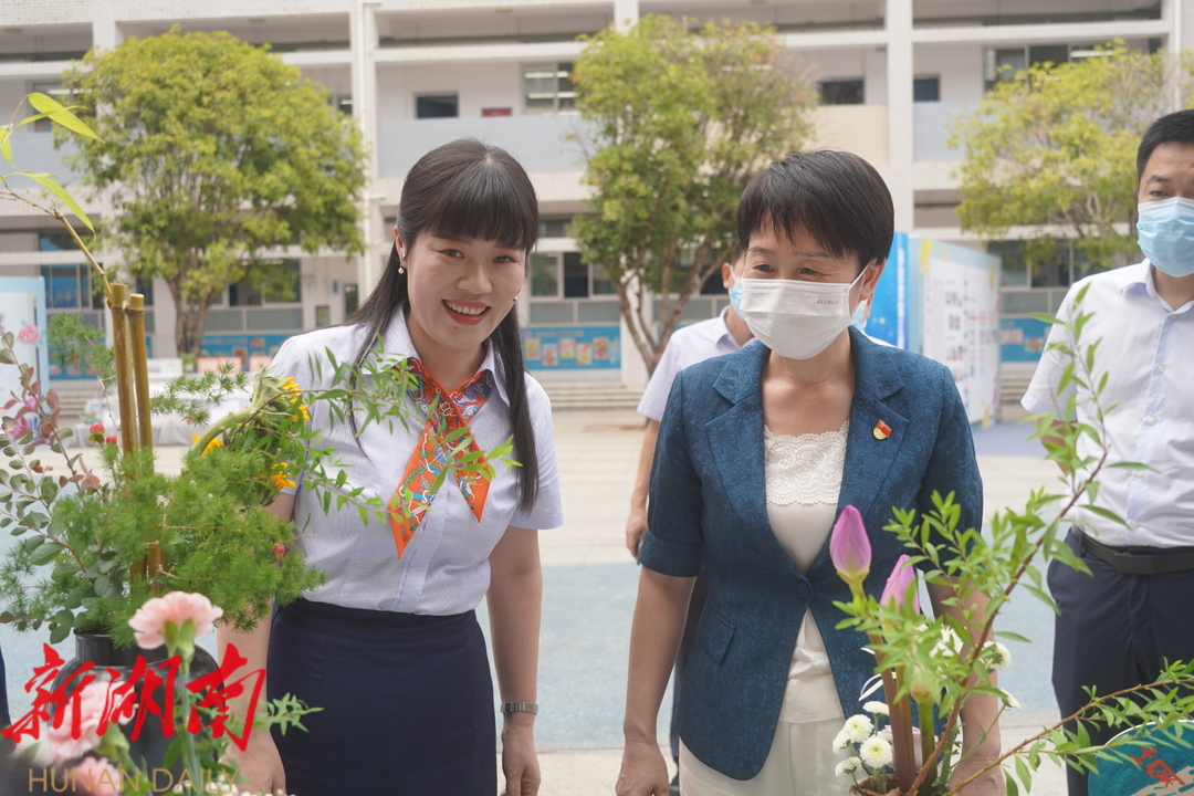 罗玉环实地走访了湘一史家坡学校、清水塘第二小学以及清水塘江湾小学,现场考察了"旧貌"焕"新颜"的校园环境,查看了老师协助同学们围绕艺术熏陶、科技创新、国学传承、手工扎染等多元化实践的学习成果,还与在岗34年仍兢兢业业,满怀教学激情的优秀名师进行了亲切交谈。