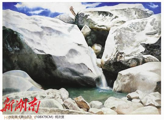 何次贤的绘画创作中,郴州始终是一个很重要的母题。何次贤告诉记者:“我的创作主要分为两大块,一块是莽山石,一块是湘南古民居。”何次贤创作的高峰期在上世纪90年代,最早上全国展览的作品就是《莽山石》。另一方面,从90年代初期起,何次贤就在郴州走街串巷,研究湘南古民居。