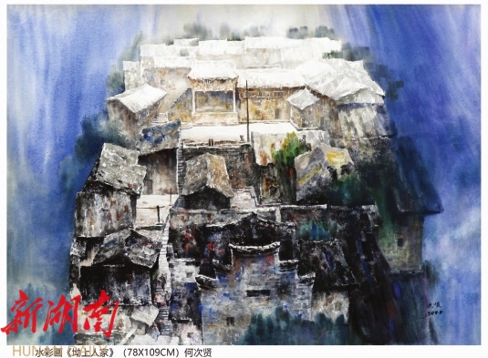 何次贤的绘画创作中,郴州始终是一个很重要的母题。何次贤告诉记者:“我的创作主要分为两大块,一块是莽山石,一块是湘南古民居。”何次贤创作的高峰期在上世纪90年代,最早上全国展览的作品就是《莽山石》。另一方面,从90年代初期起,何次贤就在郴州走街串巷,研究湘南古民居。